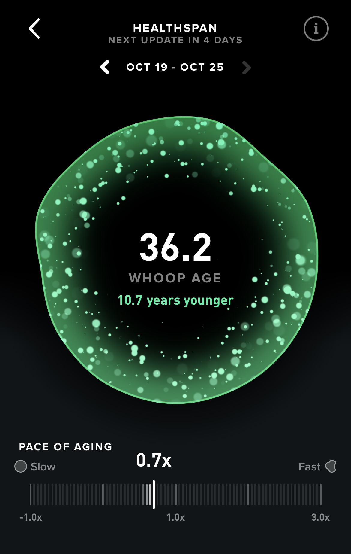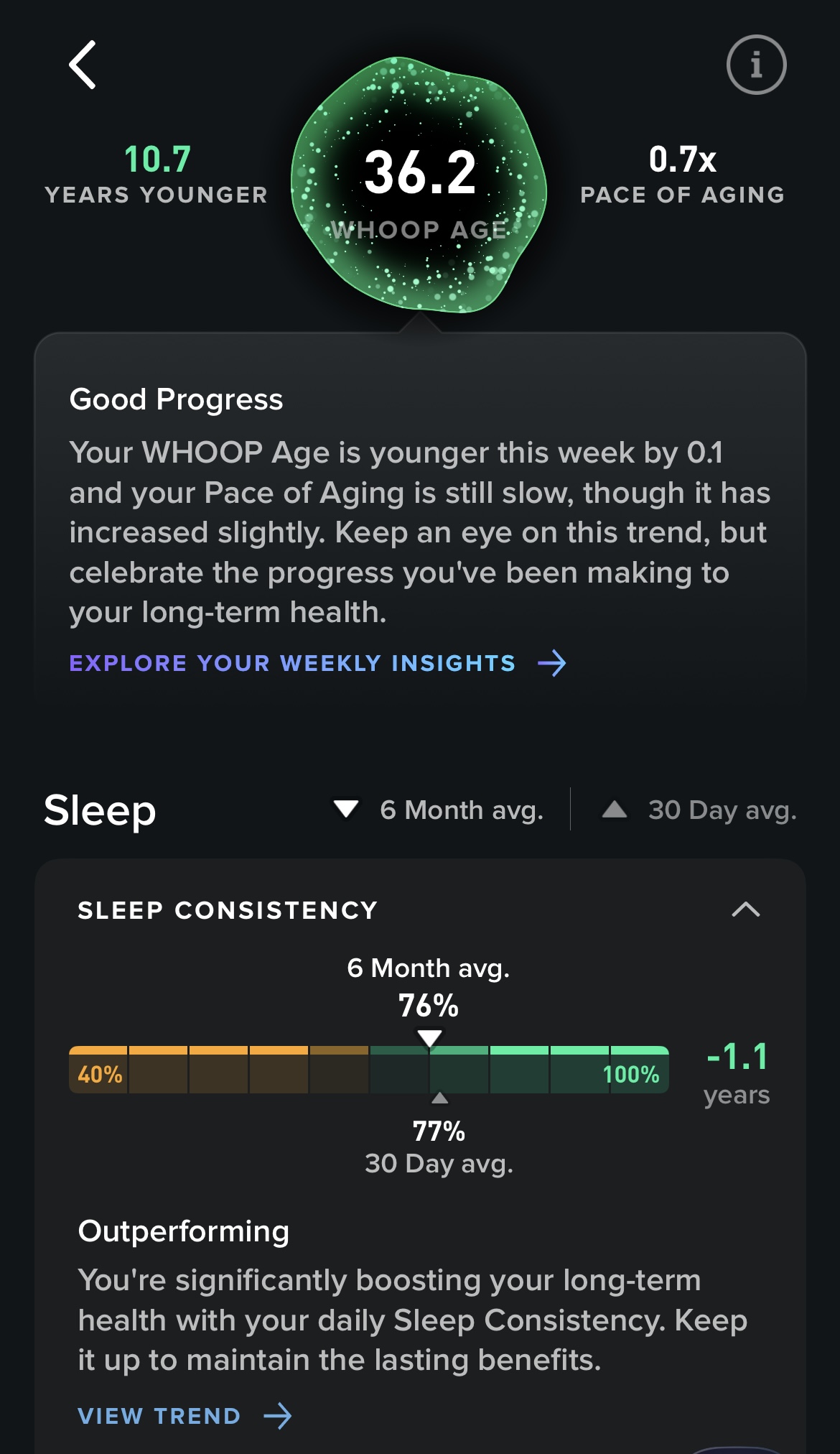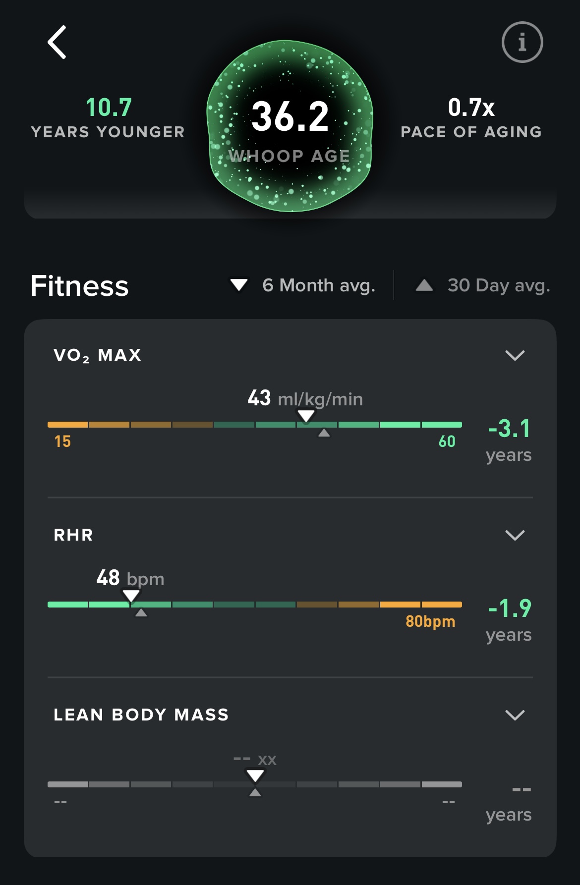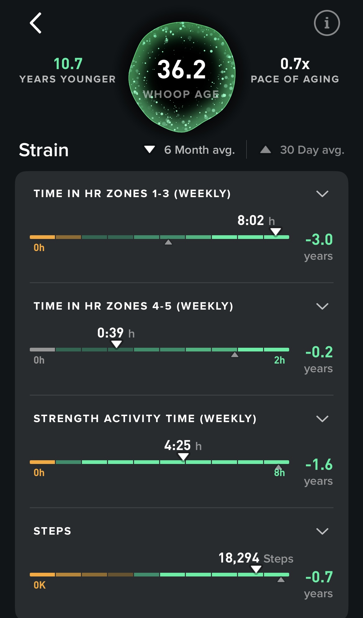 These are my stats today from WHOOP. I have been using WHOOP for 608 days. It has provided me lots of data and I get to know myself better over time and progress monitoring. I have not had a consistent family doctor in my life so being able to take charge of my health is beneficial to me. According to my documented day of birth that my father put down on paper, I am 47. According to WHOOP’s data analysis, my age is 36.2.